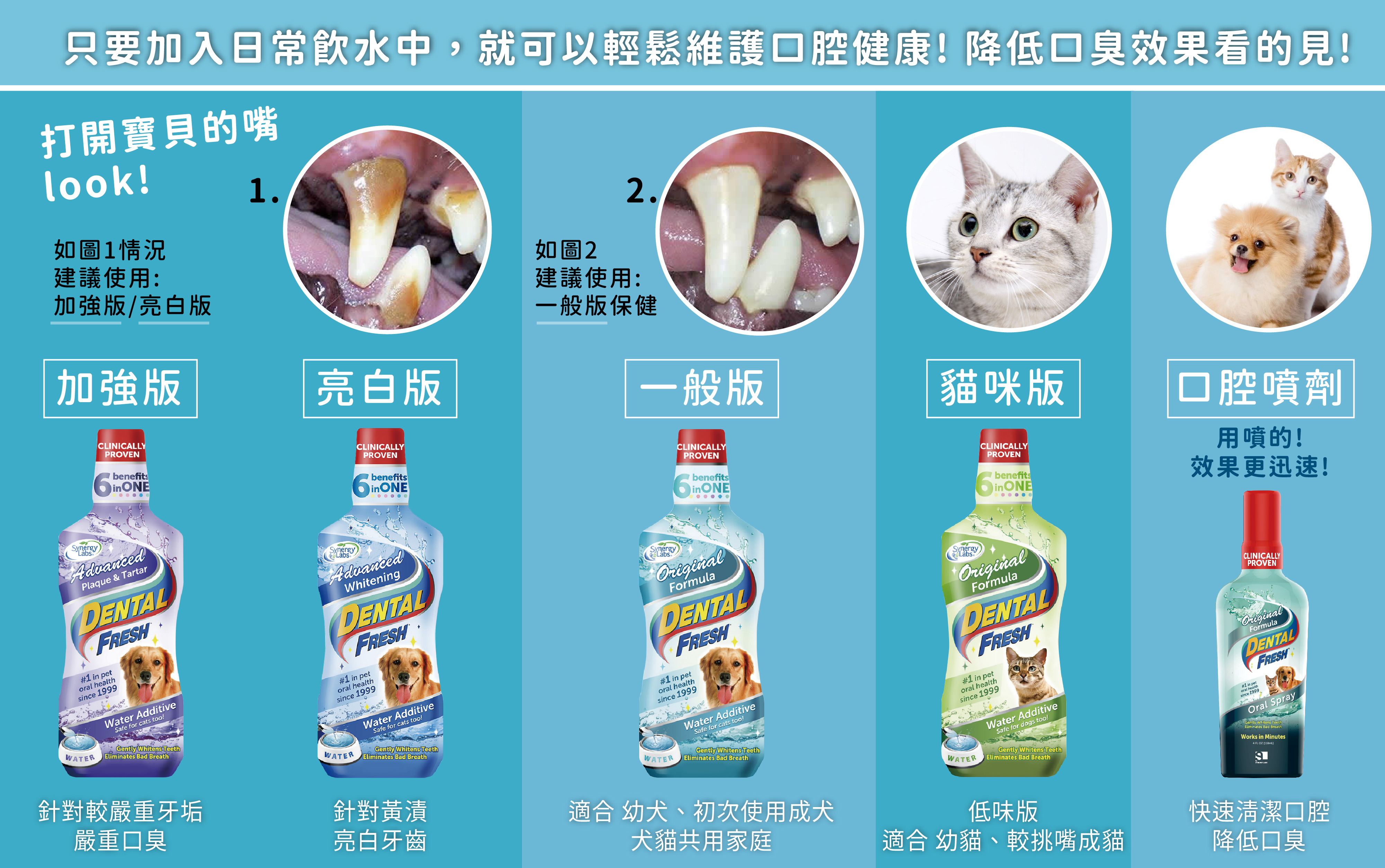 潔牙白(DENTAL FRESH)1999年美國上市,配合獸醫臨床研究,針對狗狗&貓咪不愛刷牙問題設計的全效口腔清潔護理產品。