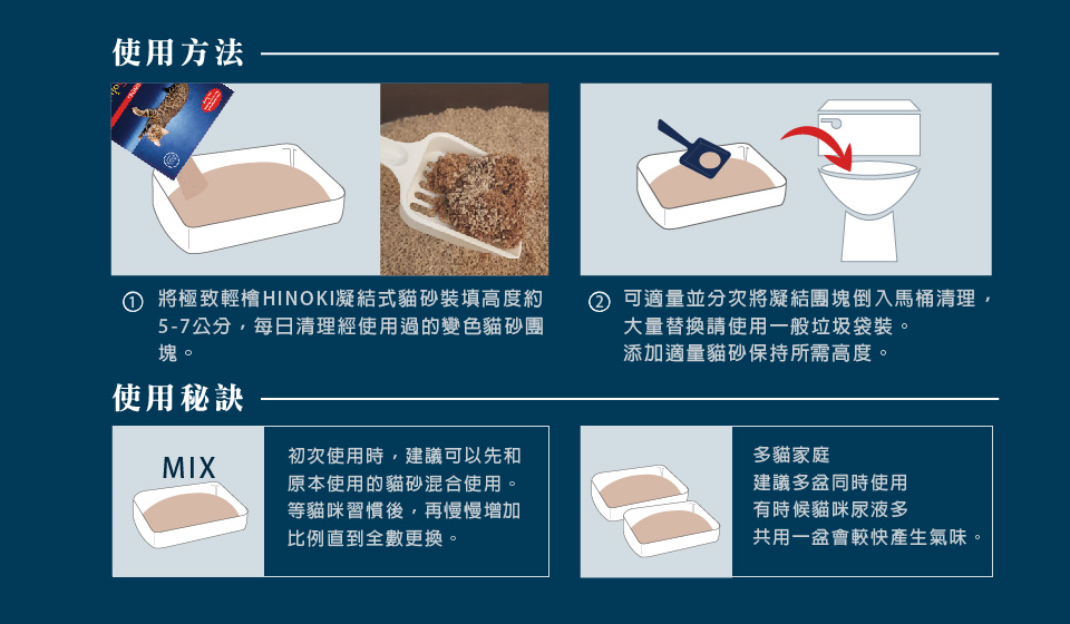 -可混合礦砂使用,提升礦砂除臭效果,減少礦砂用量(混合礦砂使用請勿沖馬桶)