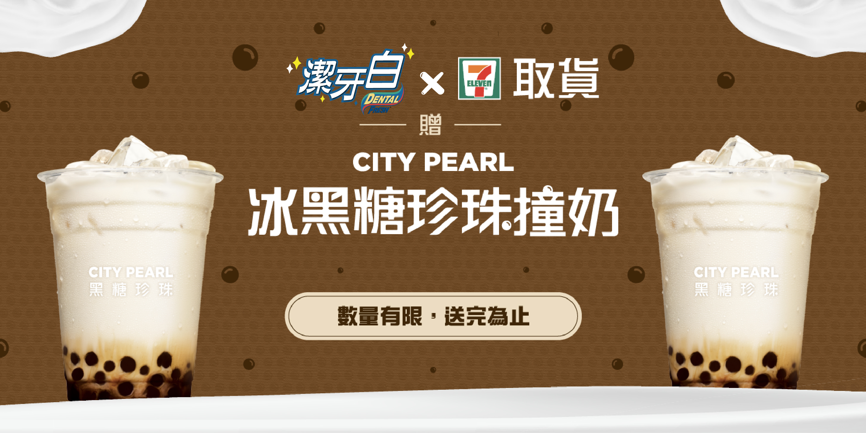 於活動時間內 ( 2021 年 7 月 19 日起至 2021 年 8 月 8 日止 ) 完成下訂並於 2021 年 8 月 24 日 23:59 前 在 7-ELEVEN 完成取件者,即享有獲取資格 ( CITY PEARL 冰黑糖珍珠撞奶 乙杯 ),贈送對象將於 2021 年 8 月 27 日起至 2021 年 8 月 28 日止依實際完成取貨順序發放,因數量有限,如未獲贈不另通知。