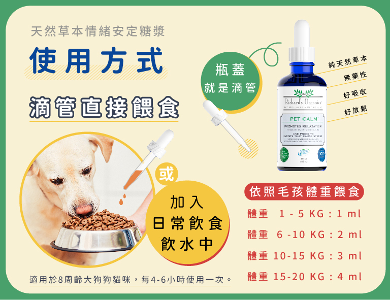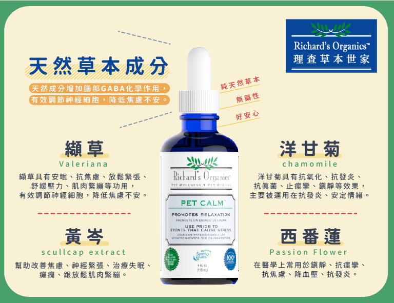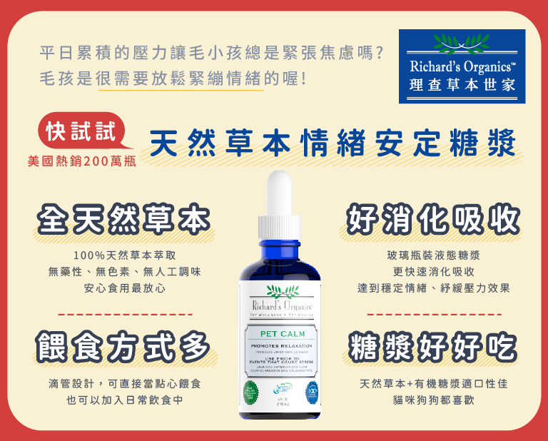 聰明的毛爸毛媽快使用 【美國理查草本世家】天然草本寵物情緒安定糖漿