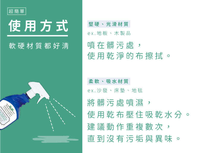 ✔ 適用於寵物尿漬,便便髒汙異味,嘔吐汙垢。