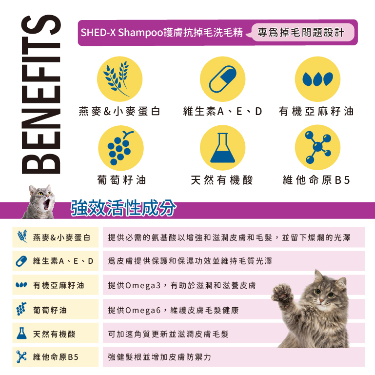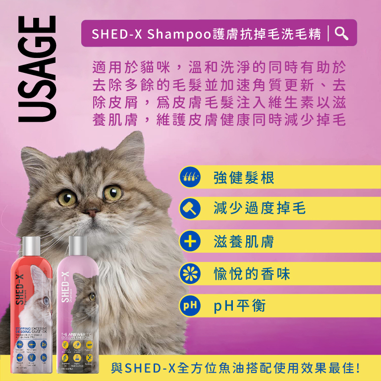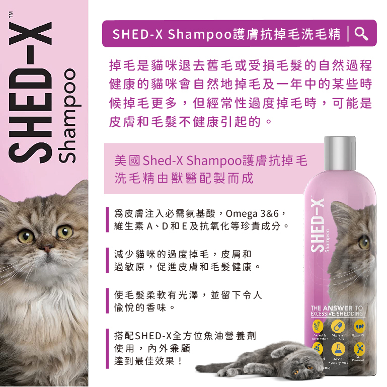 美國 SHED-X Shampoo 護膚抗掉毛洗毛精_貓咪版